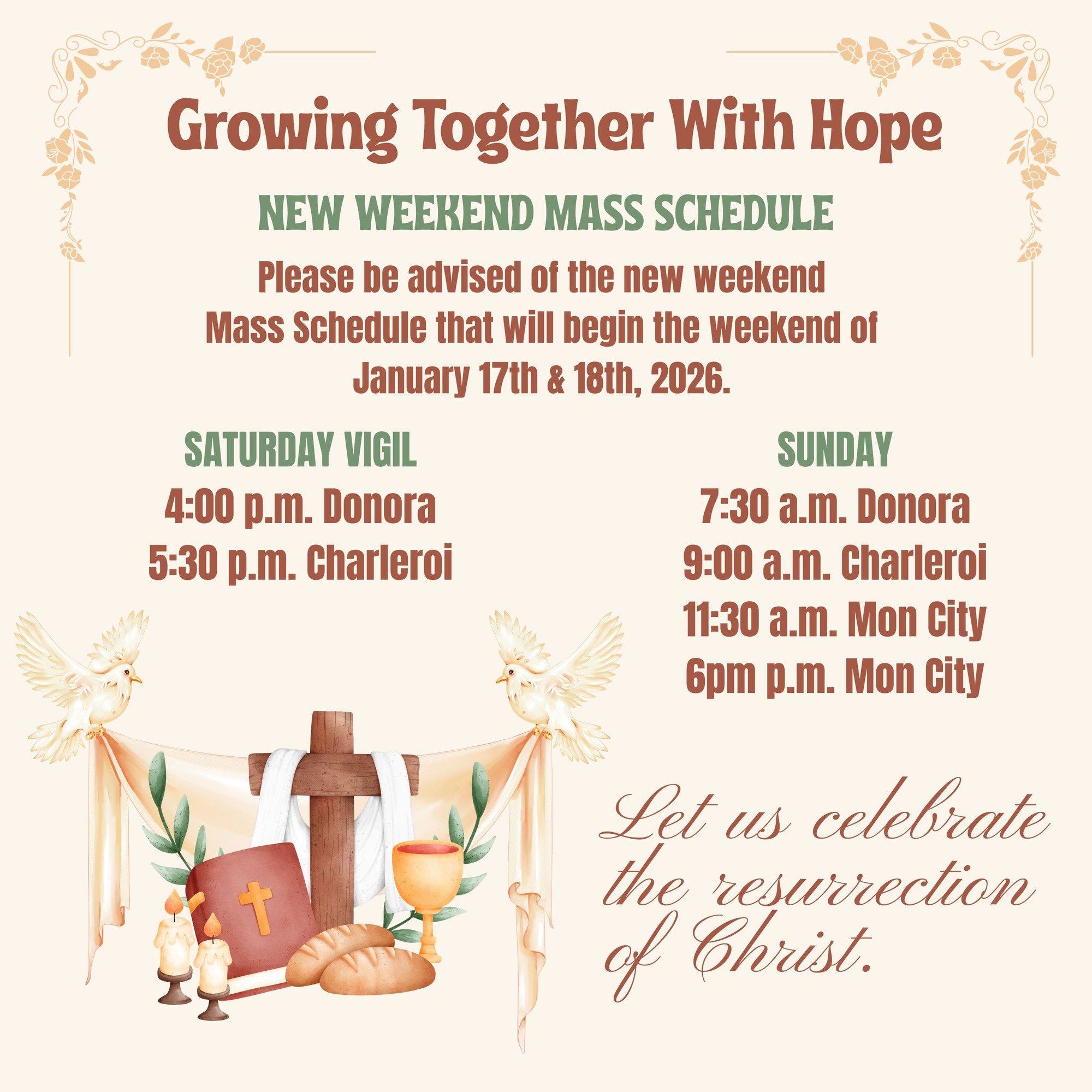 Saint Andrew the Apostle Parish is comprised of the Roman Catholic faithful from the Mid-Monongahela Valley, located in Southwestern Pennsylvania, USA. The geographical area of the Parish includes the towns of Monongahela, Donora, Charleroi, and neighboring communities. Since January 2020, the Parishioners of the valley have been worshipping together as a new parish and living a Christian Life of Faith, Hope, and Love.