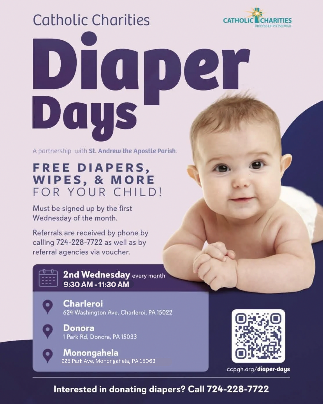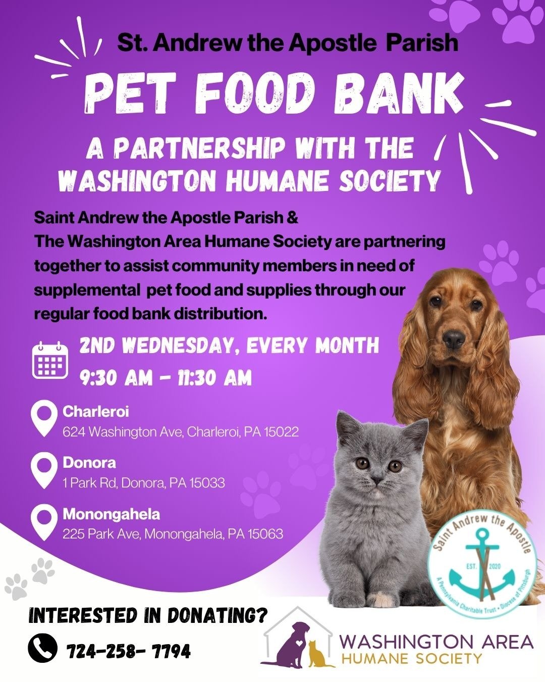 The Food Bank of St Andrew the Apostle Parish serves the Communities of Monongahela, Donora, and Charleroi. It runs strictly on a volunteer basis and is funded through the generosity of our Parish Community.